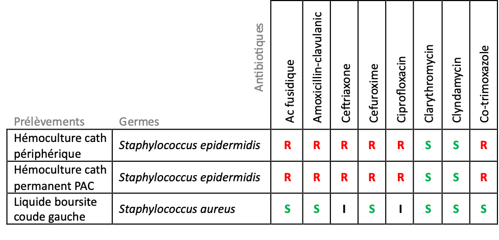 Tu dois demander au laboratoire de microbiologie de déterminer la concentration minimale inhibitrice de l’antibiotique en question afin de décider si tu peux l’utiliser.