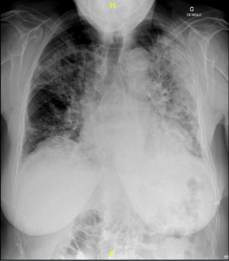 Madame Y est une patiente de 63 ans se présentant aux urgences pour dyspnée, toux et baisse de l’état général. L’examen clinique met en évidence une désaturation importante. La radiographie du thorax révèle un infiltrat alvéolaire panlobaire gauche avec un bronchogramme aérique. Les antigènes urinaires sont positifs pour une légionnelle. Face à un syndrome de détresse respiratoire aigu la patiente est intubée. Son évolution est favorable sous Levofloxacine.