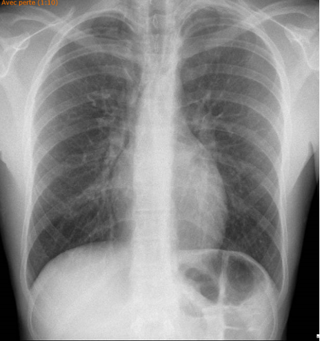 A son arrivée aux urgences, il est hémodynamiquement stable avec TA 126/76 mmHg, FC 85 bpm, sat 96% à l'air ambiant, eupnéique et afébrile. L’examen cardiopulmonaire est normal.