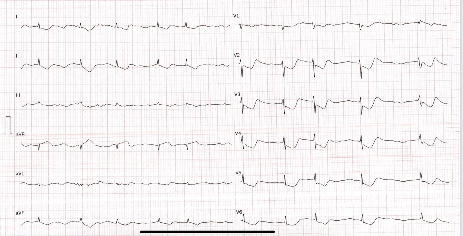Le laboratoire montre : Hb à 85 g/dl, Créat à 300 µmol/, K+ à 5.5 mmol/l, Na à 132 mmol/l.